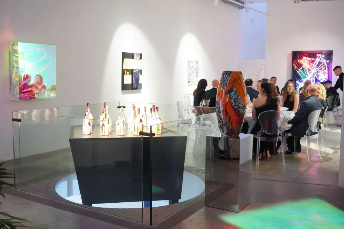 Umělec Anselm Reyle zavítal do České republiky vůbec poprvé, a to se samostatnou výstavou v DSC Gallery. Na slavnostní galavečeři a vernisáž, kterou hostila Olga Trčková, spolumajitelka DSC Gallery, spolu s šampaňským domem Ruinart, zavítali nejvýznamnější klienti, milovníci umění a osobnosti české umělecké scény. Ti mohli obdivovat nejvýznamnější díla umělce i novou limitovanou edici šampaňského Ruinart, na které se Anselm Reyle umělecky podílel.
