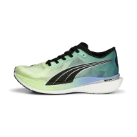 Model Deviate NITRO Elite 2 je navržen jako hnací motor pro výbušný běh. Poskytuje tlumení nové úrovně a díky technologii PWRPLATE z karbonových vláken zajišťuje maximální návratnost energie. Tato běžecká bota navíc poskytuje prvotřídní odpružení bez zatížení navíc. Je totiž vyrobena z lehké mono-síťoviny. Takže jsou vám v botě vidět i ponožky, což může být příjemným zpestřením nebo také pěkným oříškem, když zjistíte, že nemáte reprezentativní ponožky. Odolná pryž PUMAGRIP potom zajistí přilnavost k více povrchům a běh bez námahy, takže se nemusíte obávat podkluzování.