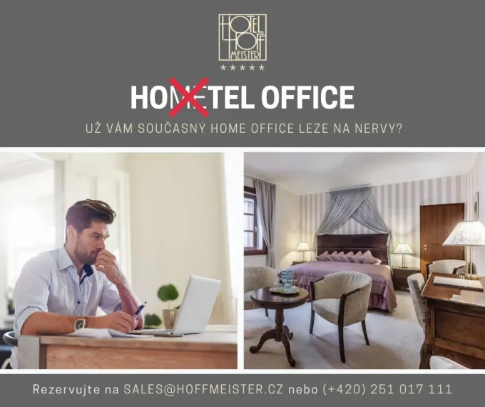 Hotel Hoffmeister ve svých pokojích nabízí plně vybavený, útulný a funkční prostor, ve kterém se budete cítit jako v té nejluxusnější kanceláři. Z parkoviště se poté dostanete hned výtahem do své provizorní kanceláře, ve které si kromě práce můžete klidně i odpočinout. Samozřejmostí je vysokorychlostní bezdrátové připojení Wi-Fi, díky kterému můžete pohodlně pracovat či se zúčastňovat online meetingů.