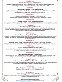 Pětichodové menu (nepočítaje zcela originální amuse bouche, sadu dezertů a petit fours Champagne pralinek Ellory) doprovodí pět různých Champagne cuvée zúčastněných domů. Speciální bude i servis jednotlivých chodů, který bude evokovat danou dobu té pravé hostiny.