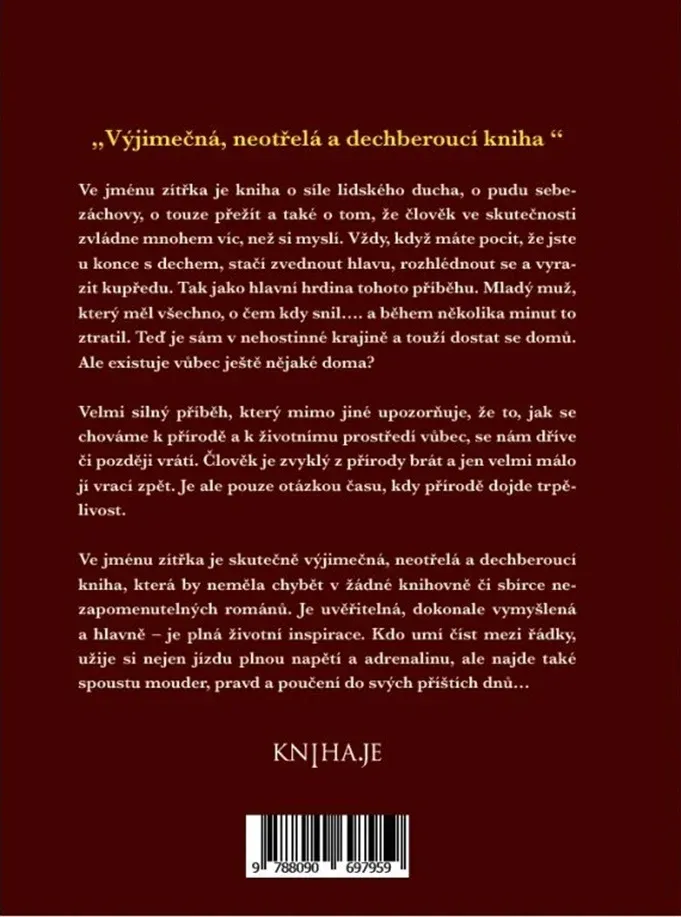 Příběh Alana, který utíká před nejmenovaným nepřítelem, vás uchvátí a pustí ještě dlouho poté, co dočtete. Ve jménu zítřka je kniha o síle lidského ducha, o pudu sebezáchovy, touze přežít a také o tom, že člověk ve skutečnosti zvládne mnohem víc, než si myslí. Vždy, když máme pocit, že jsme již u konce sil, je třeba zvednout hlavu, rozhlédnout se a vyrazit - tak jako hlavní hrdina tohoto příběhu.