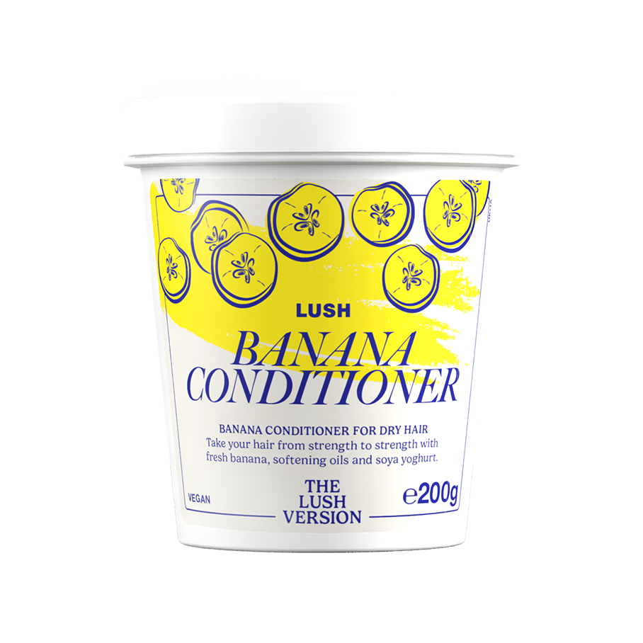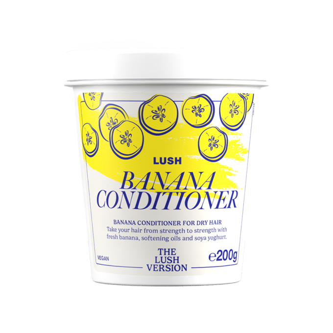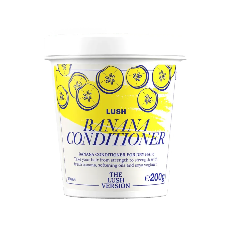 Tento kondicionér pečuje o suché, namáhané a chemicky ošetřované vlasy, aniž by je zatěžoval, a dodává jim potřebnou vláhu i objem. Více než 30 % tvoří gel z mořské řasy agar agar, který podporuje jemnost a lesk, zatímco sójový jogurt spolu s arganovým a olivovým olejem posilují vlasové vlákno a usnadňují rozčesávání. Banánová vůně navíc dodává celé péči lahodně hřejivý charakter.