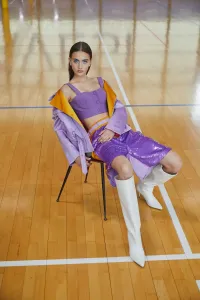 Sport, a zejména basketbal, zde nachází prostor a stává se dominantním tématem kolekce – dlouhé, volné vesty, připomínající vesty basketbalistů, jsou pokryty zlatými flitry a nesou číslo 23, číslo sezóny.