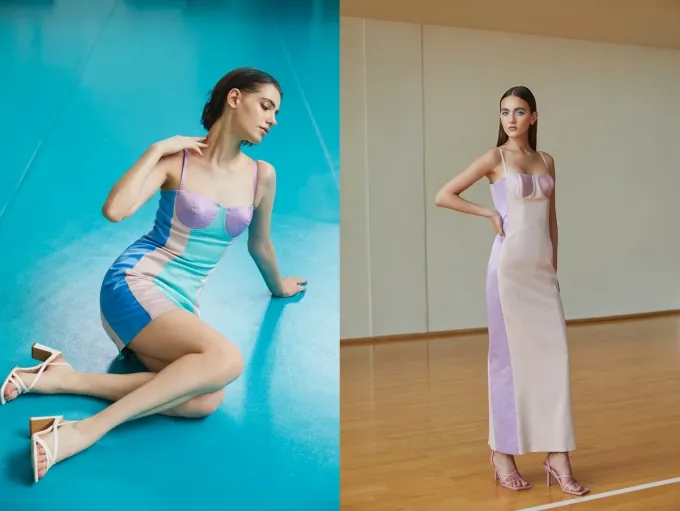 Vodní zelenomodrá, sytě růžová a šeříková se mísí s bílou, světle růžovou, černou a béžovou a vytváří pestrou a ženskou paletu, která v jasných barvách nachází mladší výraz a v neutrálních barvách dospělejší rovnováhu, ale když to nejméně čekáte, opět se mísí mezi sebou, mezi pruhy a květinovými vzory.