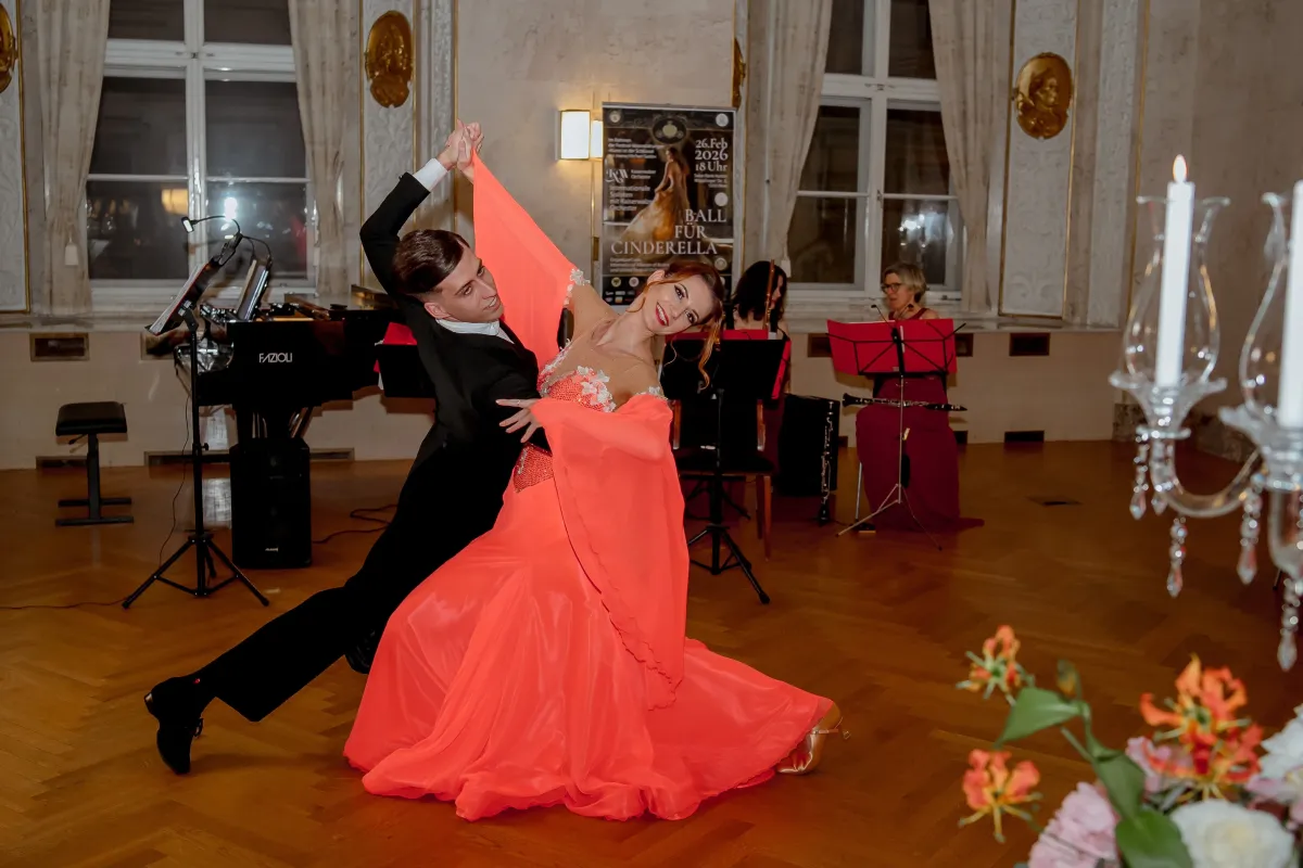 Atmosféru plesu podtrhla hudba Karla Svobody z pohádky Tři oříšky pro Popelku v podání Kaiserwalzer Orchester. Zahajovací tanec předvedli vítězové mezinárodních soutěží Vít Krejčík a Zuzana Chlumská. Jejich vystoupení bylo beze slov, ale plné emocí – příběh o vnitřní síle, probuzení lásky a eleganci uprostřed ústrků a předsudků.