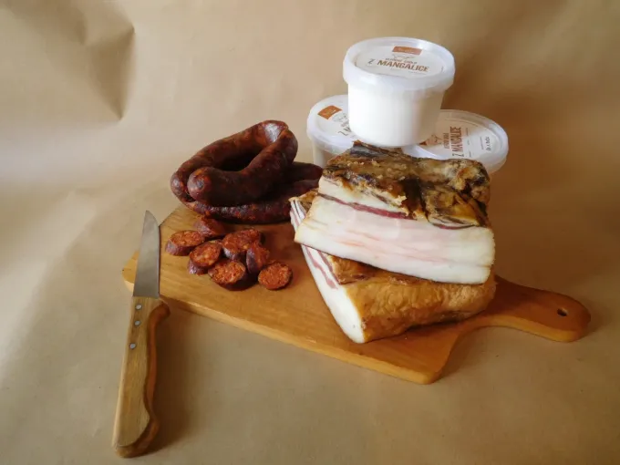 Z Maďarska jsou pro Vás, přímo od certifikovaného chovatele mangalic, dováženy výrobky, mezi nimiž nalezneme klobásy, špek či sádlo. Co vlastně znamená, když řekneme, že se jedná o certifikovaného chovatele s certifikovaným masem? Každé prase, které firma využívá do svých výrobků, má svůj vlastní rodokmen a každý produkt je vyráběn tak, aby neobsahoval žádné alergeny či umělá dochucovadla ani barviva. Zpracování probíhá ručně, bez použití jakýchkoliv moderních technologií, podle tradiční receptury.