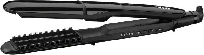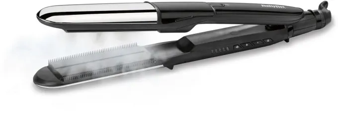 Nejnovější model parní žehličky na vlasy BaByliss Paris ST492E nabízí cestu šetrného způsobu vyrovnávání vlasů pomocí vodní páry. Elektrický generátor zajišťuje nepřetržitý proud páry, která skrz mikroperforované otvory proniká do vlasů. Je vybavena keramickými topnými deskami o rozměrech 39 x 100 mm a nádobou na vodu o velikosti 12 ml a také technologií Tech „Advanced Ceramic TM“. Přístroj dává na výběr z 5 teplotních stupňů od 150 do 230 °C, aby úprava odpovídala typu vlasů. Pro slabé, jemné, odbarvené či barvené vlasy se hodí nižší stupeň, pro silné vlasy naopak vyšší. Žehlička je nahřátá již během 20 vteřin, což snadno poznáte díky LED indikátoru teploty. Pohodlné užívání umožňuje 2,5 metru dlouhý kloubový napájecí kabel a teplu odolná podložka, kterou je možné využít během nebo po úpravě vlasů. Kontrolu nad spotřebičem zaručuje LED indikátor zapnutí a pro zvýšení bezpečnosti je žehlička vybavena funkcí automatického vypnutí.