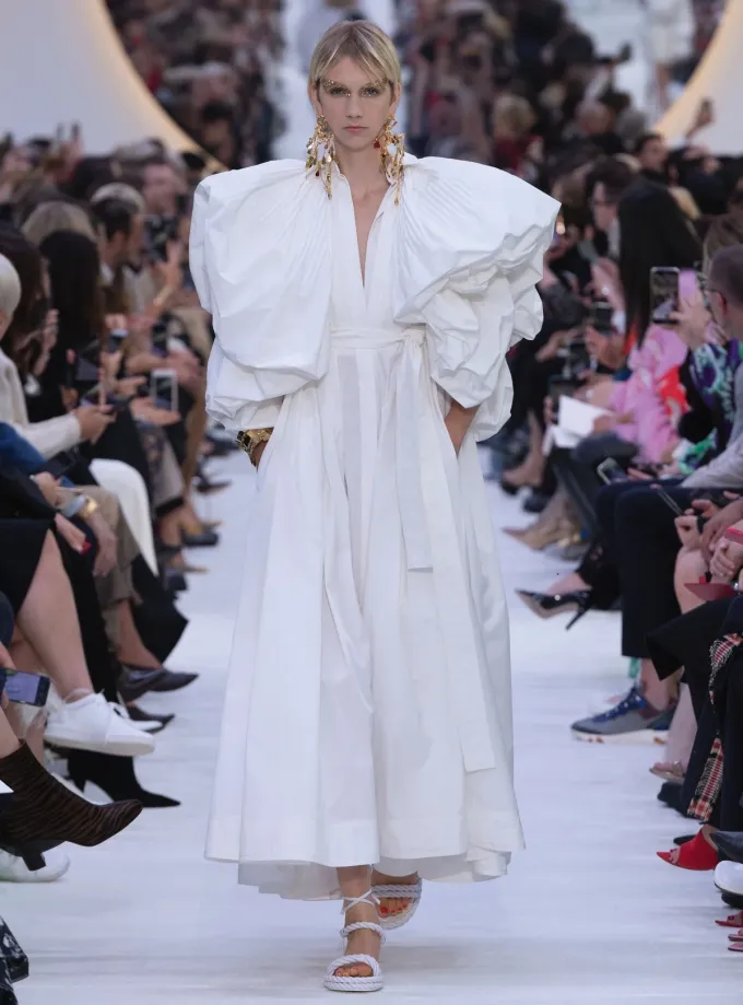 Bílá barva radikálně minimalizuje zdobnost a oslavuje tvar. Kreativní ředitel Pierpaolo Piccioli separoval základní elementy Couture a některé z nich použil, aby je představil v běžné univerzálnosti bílé košile. Bílá zde nepředstavuje minimalistickou variantu. Naopak. Všudypřítomná bílá barva se objevovala již v 16. století v černobílých kresbách a díky vyváženosti mezi technikou šerosvitu, tělesy a prostorem, vytváří trojrozměrné výjevy s úžasnými výsledky. Bílá je instrumentem oslavy formy a objemu; je zjevením metaforického roucha, mocného a nádherně čistého. Na nepopsaném listu, který je zároveň kreativním prostorem, nemohou vzniknout žádná pochybení a Pierpaolo Piccioli to potvrzuje svou krejčovskou mistrností, která je zbavena rušivých barevných elementů.